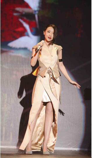 借助元曲经典《牡丹亭》的元素与概念,刘美麟以一席金色长裙亮相,在古色古香的舞台氛围映衬下,尽展侠女形象。