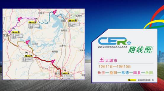 2017年9月中旬,中国新能源汽车拉力锦标赛新闻发布会在长沙召开,赛事公布了洞庭湖赛段赛程与时间等信息。据官方信息发布,该赛程将从长沙开启,途径岳阳、常德、益阳、南县,环绕湖南省环洞庭湖经济生态区进行本次赛事,全程约600公里。赛事目前已经开启社会招募,众多国内新能源汽车实力品牌纷纷参与。目前已有特斯拉、众泰、比亚迪、北汽等多家汽车品牌派遣旗下新能源车型参与比赛。